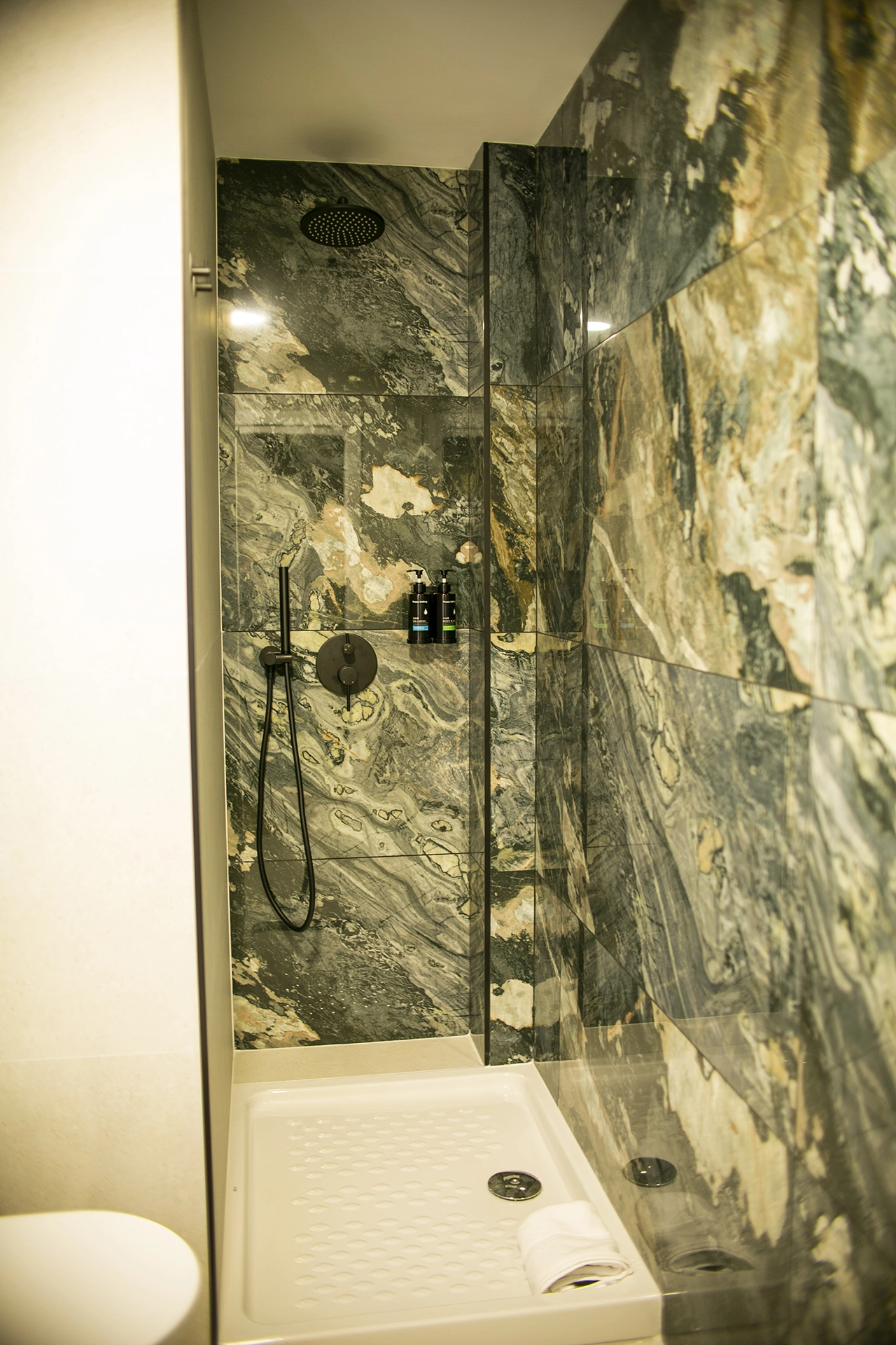 Terraza privada con mobiliario e iluminación ambiental.