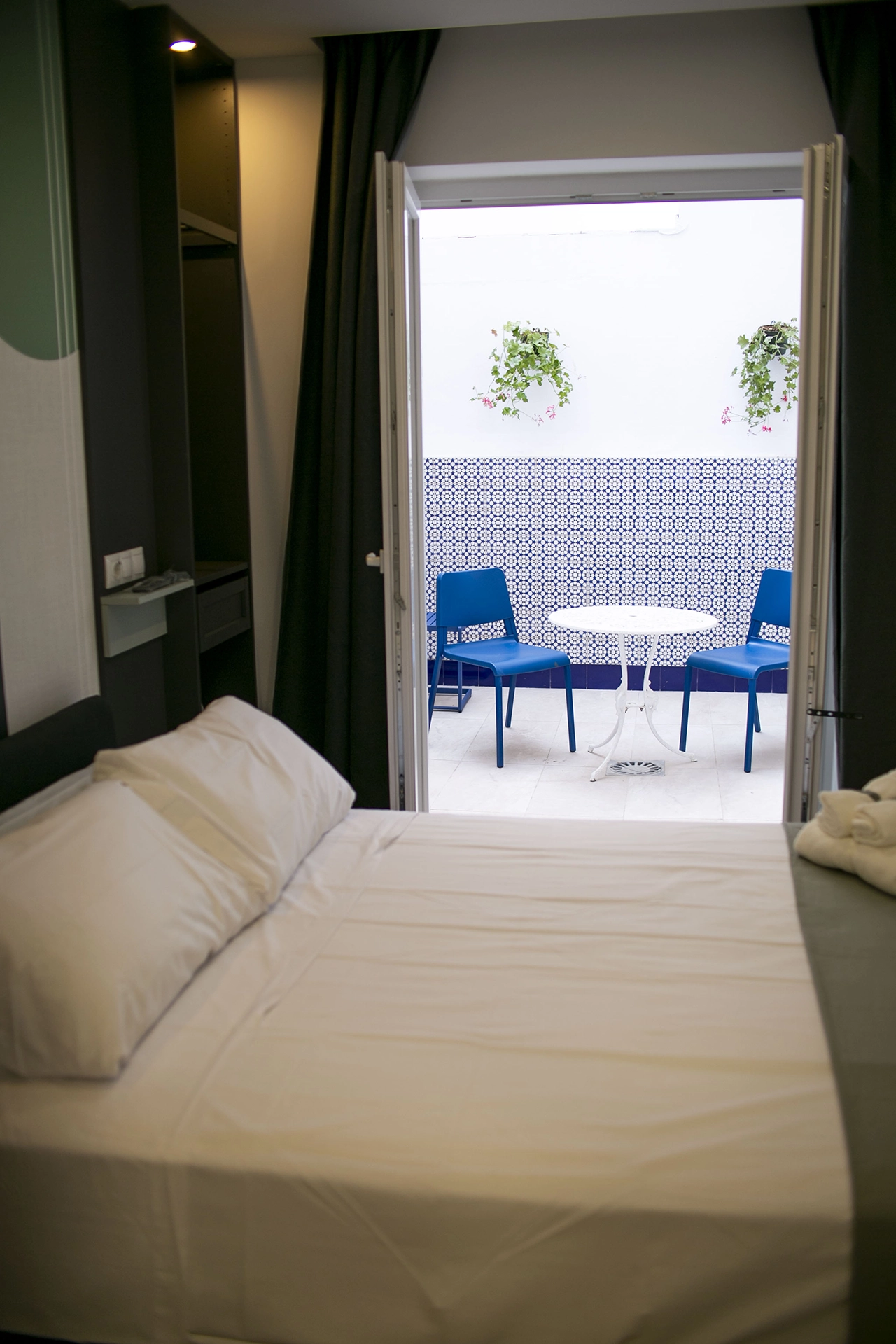 Para quienes buscan una experiencia de tranquilidad total, esta habitación ofrece ventilación directa a nuestro patio interior inspirado en la tradición local. Este espacio asegura un silencio absoluto y una luz suave, convirtiendo la estancia en el rincón ideal para desconectar por completo del ritmo exterior en un ambiente fresco y natural.